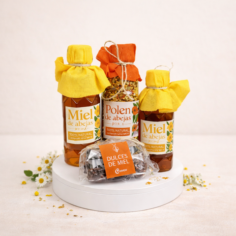 La unión de miel y polen ofrece una experiencia completa de los productos esenciales de la colmena, pensada para el consumo diario y consciente.